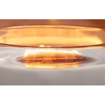 Una rica fragancia combinada con una llama danzante y un suave crepitar en una vela en forma de lágrima.